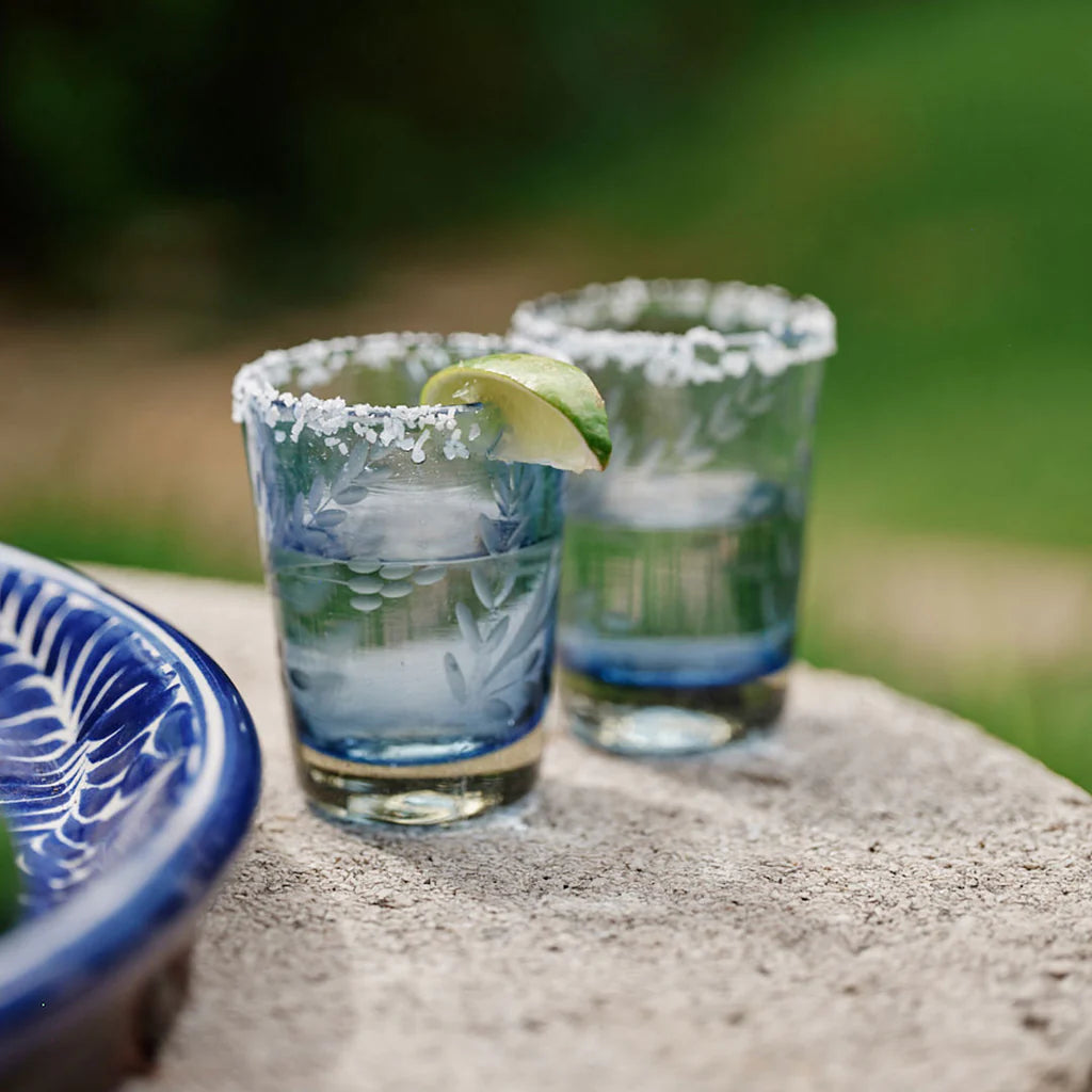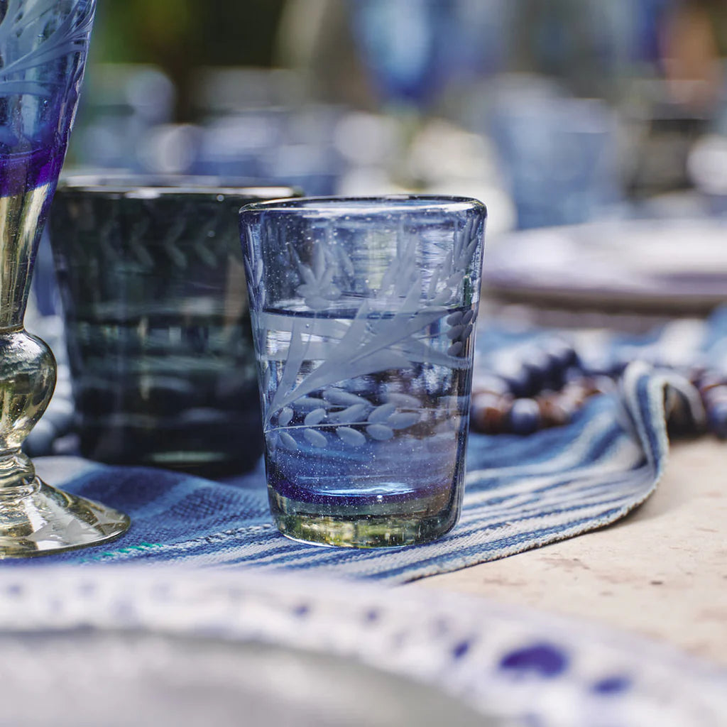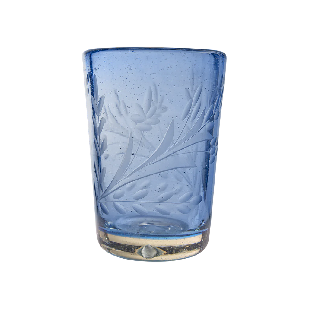 Mouthblown glass in azure with pepita engraving... the first and last glass to use each day... juice, milk, wine