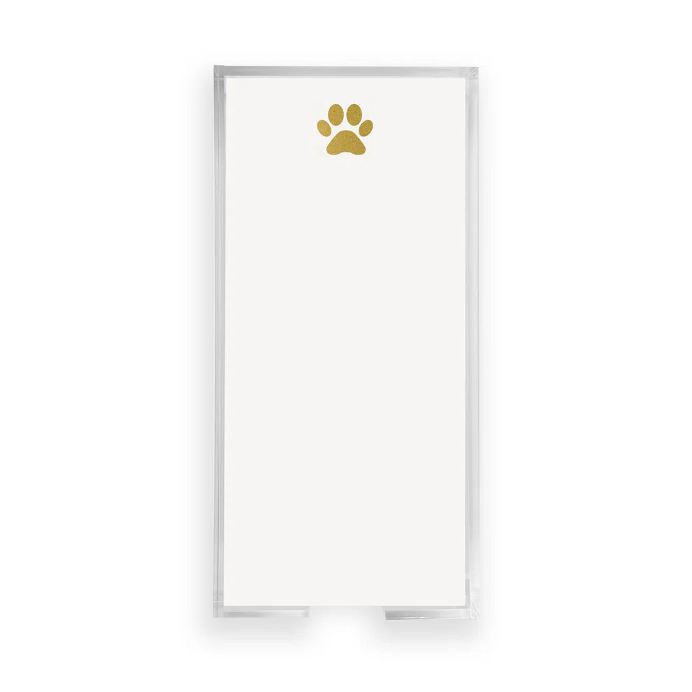 Our 4 x 9.25 inch Gold Foil Paw notepad was designed especially for us animal lovers!  Declare your pawsomeness with 160 sheets of luxurious, smooth white cardstock printed with an elegant gold foil icon. We're guessing these pads will inspire you to sit and stay at your desk!