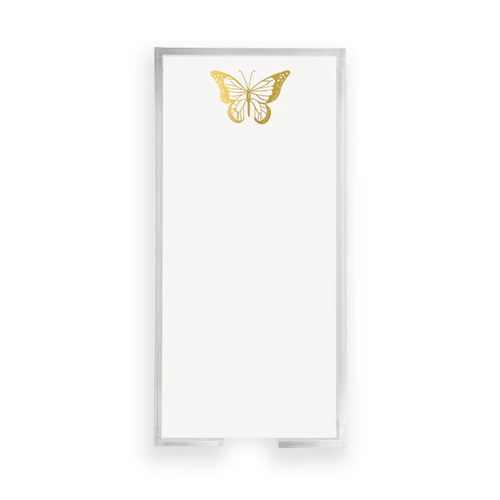 Our 4 x 9.25 inch Gold Foil Buck Butterfly notepad boasts 160 sheets of luxurious, smooth white cardstock. We know this one is going to sell out quickly, because it always does!