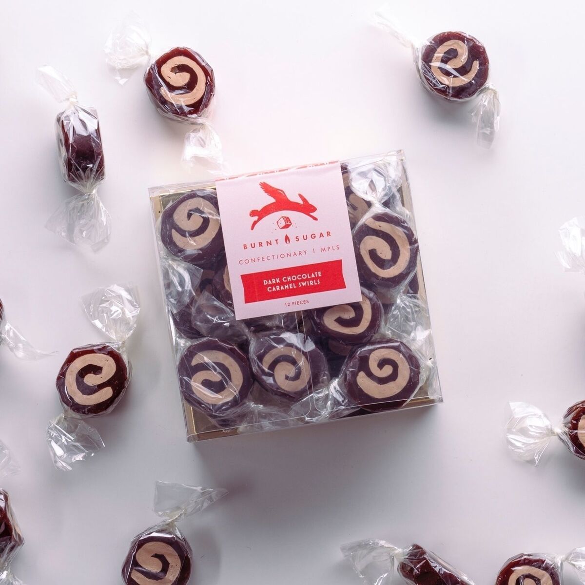 Soft dark chocolate caramel swirled with honey nougat. A chocolate lovers perfect bite. (12 pieces)