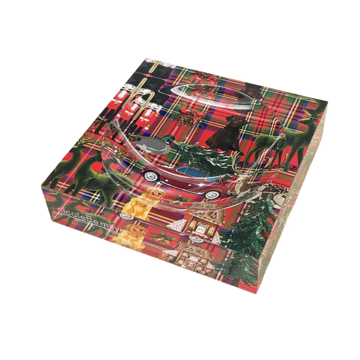 The Ultimate Christmas Acrylic Candy Catchall Dish features all the things we love about a cozy festive Christmas. The pattern includes a festive gingerbread house, a majestic reindeer, charming evergreen christmas trees, a nutcracker, set on a christmas plaid, with a golden retriever, cute duck, and a beloved deer. Let these holiday icons adorn your home and bring the perfect Christmas atmosphere to your celebrations. Perfect for organizing small items or serving treats.