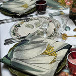 20"x20" A delicate balance of nature and artistry, the 'Water Lily' Linen Napkin brings an air of tranquillity to the table.