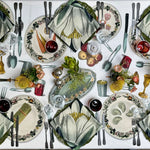 A little message about our printed linens… Linen is much loved for its natural and irregular look. We’ve developed techniques in our manufacturing process to relax and soften the textured surface of the fabric, meaning your tablecloth and napkins may feature some small white spots and areas of fading on its printed surface. These irregularities are normal and make each item entirely unique.