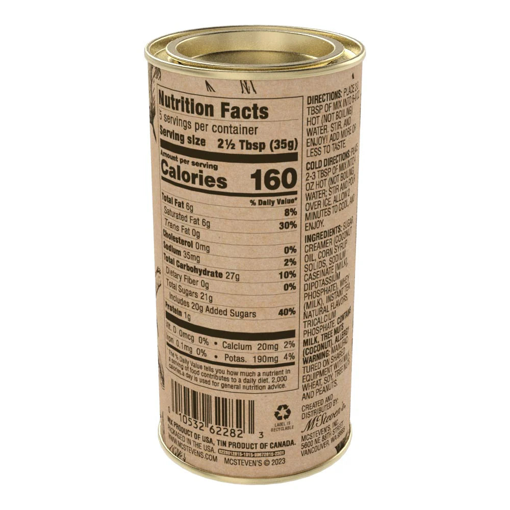 Relax with a warm and delicious blend of aromatic spices. This chai tea latte mix can be served warm or cold for enjoyment all year long. Packaged in our classic 7oz round gold-top tin with a craft paper aesthetic. Net weight 7oz.