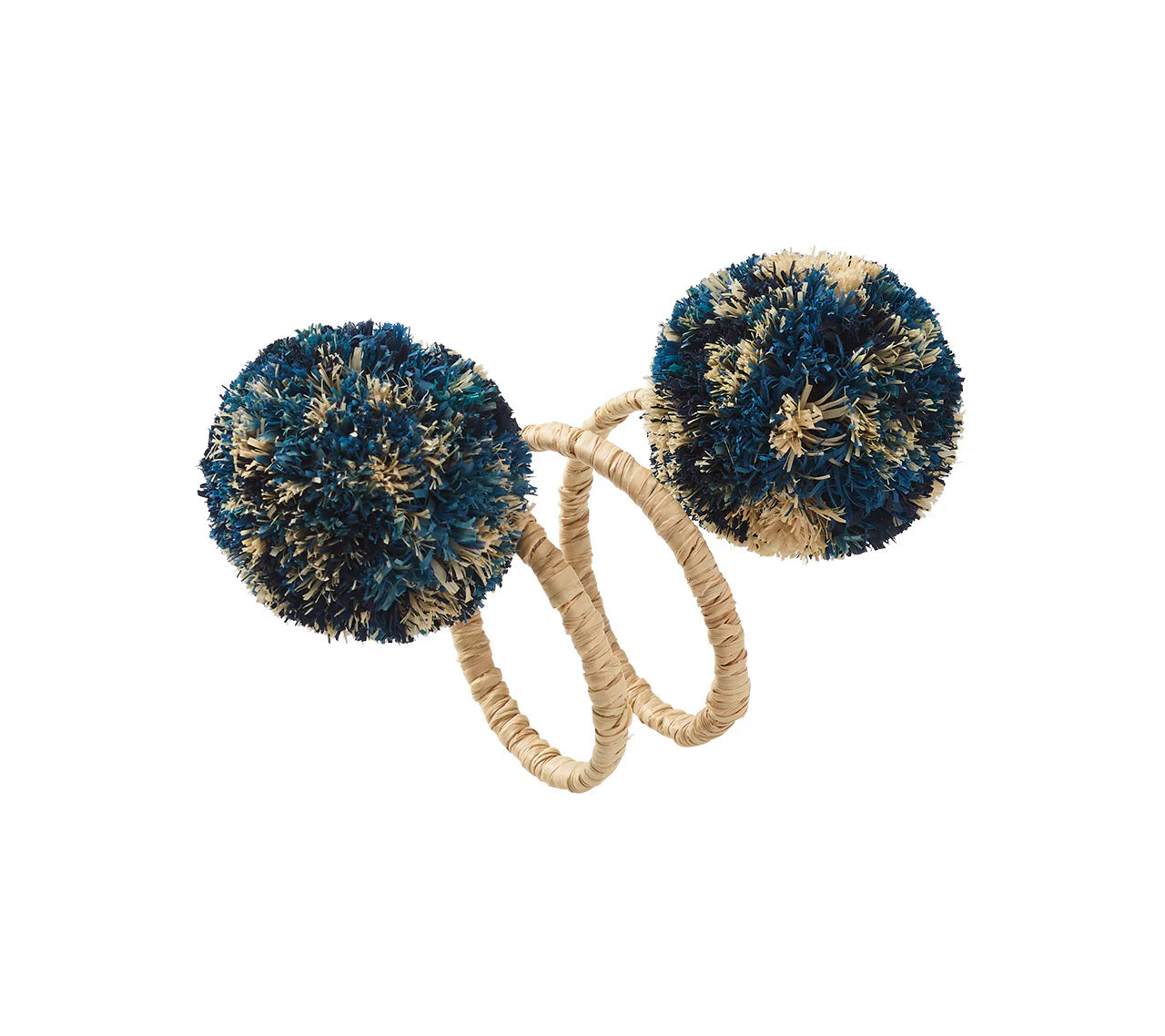 The Casbah Napkin Ring is simply essential for organic elegance. Artistic hand-dyeing techniques applied to natural raffia create multi-color pompoms that playfully pop on any table. Style it with everything from our nature-inspired placemats to golden-hued bamboo glassware.