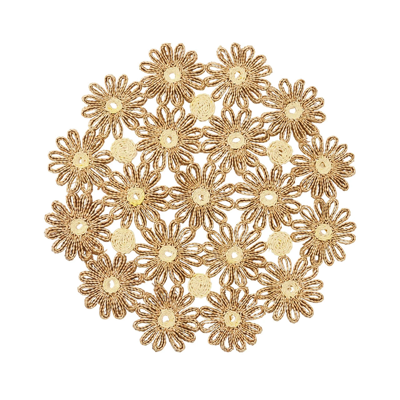 The Daisy Placemat celebrates the beauty of life's simple pleasures. Handwoven swaths of river grass bring a natural ease to your table, evoking the joyful spirit of sun-drenched locales, garden getaways, and more outdoor gatherings. Offered in two variations of ivory/natural and yellow/natural, this versatile color palette blends with any organic aesthetic.