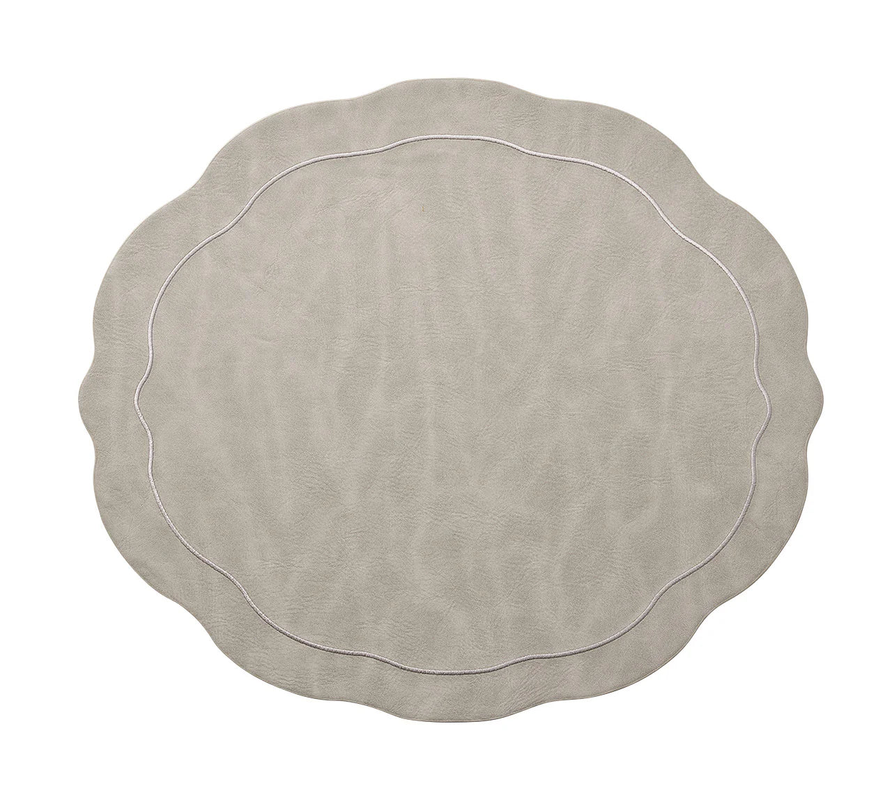 The traditional oval shape gets a modern refresh with the matte faux leather Tailored Placemat. A stylish wavy edge and embroidered tone-on-tone border detailing elevate this faux leather accessory. This hard-backed versatile placemat is available in a variety of colors. The harvest brown variation is suitable for various entertaining themes, whether it's Thanksgiving celebrations, casual dinners, or anything in between. This versatile placemat effortlessly adapts to both dressed-up and more laid-back settings.