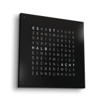 The QLOCKTWO CLASSIC receives an exclusive matt surface finish through the elaborate powder coating. The lasered-out letters of the iconic matrix make the light appear in an impressive presence. The three-dimensionality of the surface is further enhanced by this. On request, the powder coating is available in any RAL color tone as QLOCKTWO CUSTOM COLOR and thus becomes a personal unique specimen. QLOCKTWO is delivered in the selected language. To display time in another language, you simply need the respective front cover, which is available as an accessory. Please note: For arabic language version, front covers can only be changed within the same language.