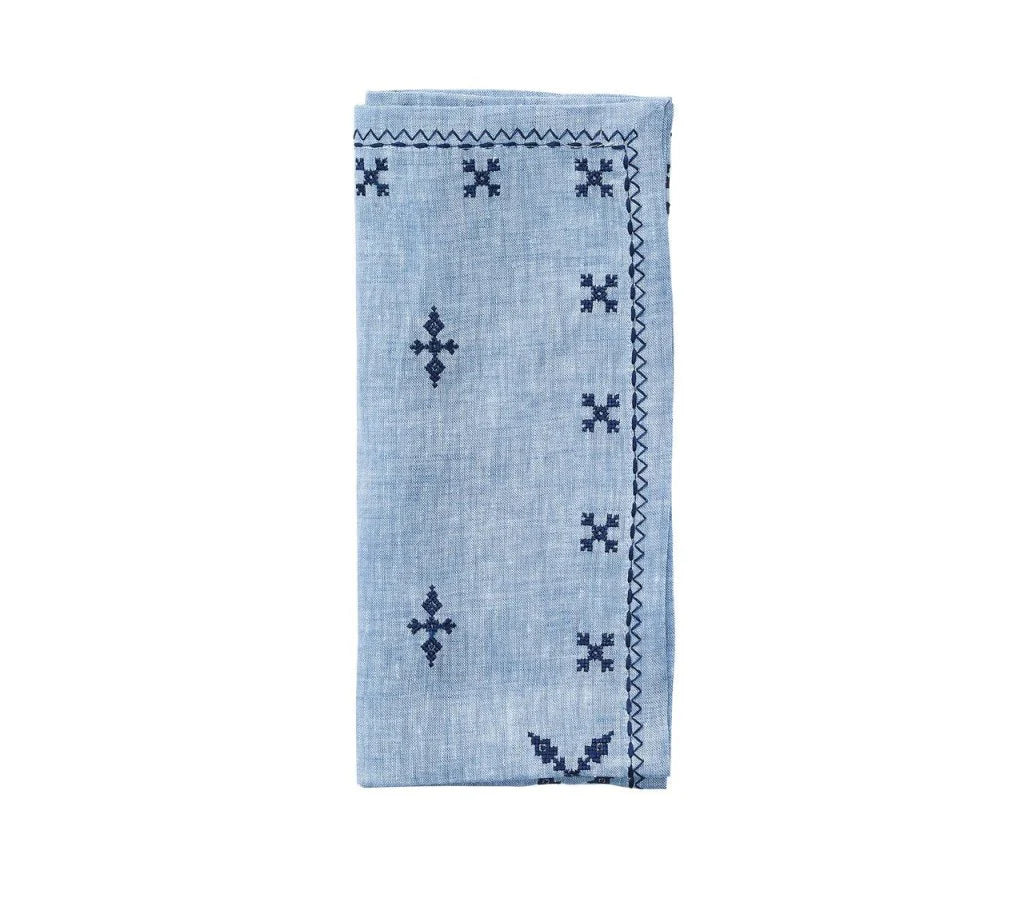 Inspired by the richness of traditional Moroccan embroidery, the linen Fez Napkin features embroidered shapes that are arranged in a carefully thought-out symmetrical pattern. This is the perfect napkin for casual dining.