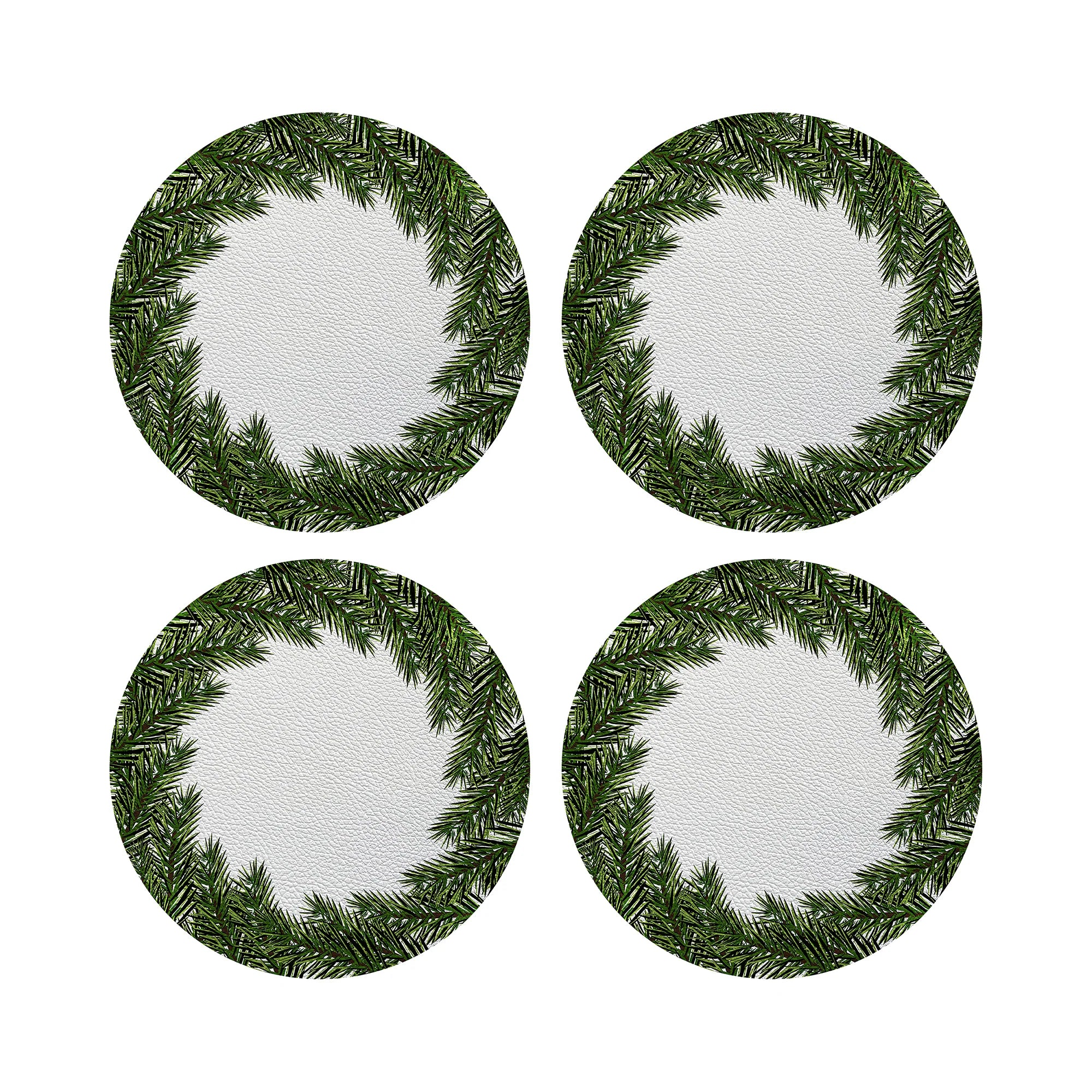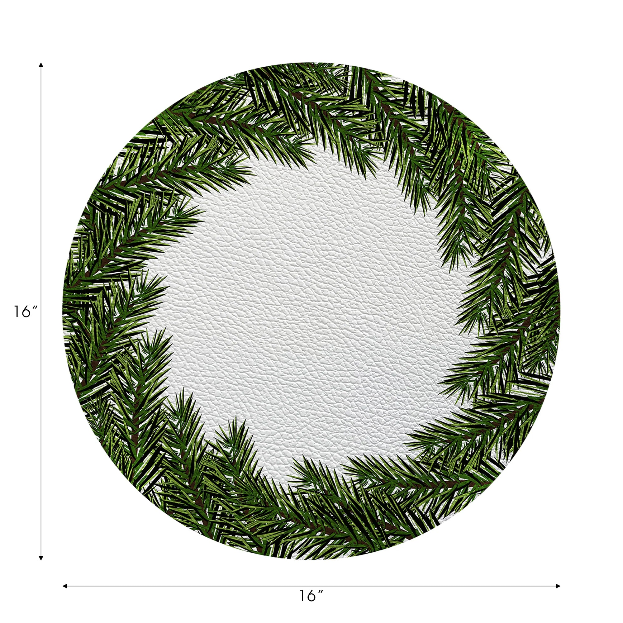 Surround your table with the lush charm of Evergreen Vegan Leather Round Pebble Placemat feature a festive holiday motif that radiates the joyful spirit of Christmas — a refined gift that adds elegance and warmth to any celebration, perfect for both indoor and outdoor settings. Crafted from premium vegan leather, this set is available in options of 4, 8, or 12 pieces. Each placemat is proudly made in the USA, featuring our exclusive pattern on the front and an elegant off-white backing. Transform your everyday table into a work of art, infusing it with the spirit of the season.