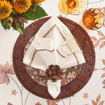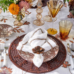 The Begonia Napkin Ring radiates year-round beauty, warmth, and striking elegance like its namesake flower. Crafted from acrylic beads with a faux wood finish, arranged around a central wooden bead and metal spokes, this napkin ring is perfect for introducing a touch of natural beauty to any table setting, making it a versatile and timeless accessory that works seamlessly throughout the year.