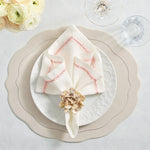 The traditional oval shape gets a modern refresh with the matte faux leather Tailored Placemat. A stylish wavy edge and embroidered tone-on-tone border detailing elevate this faux leather accessory. This hard-backed versatile placemat is available in a variety of colors. The harvest brown variation is suitable for various entertaining themes, whether it's Thanksgiving celebrations, casual dinners, or anything in between. This versatile placemat effortlessly adapts to both dressed-up and more laid-back settings.