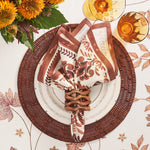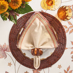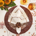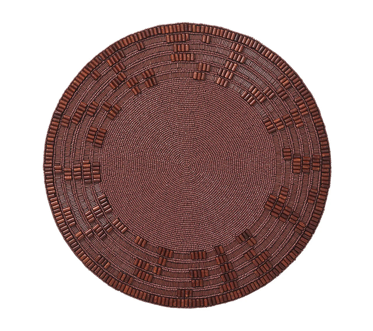 The artisanal Wood Matrix placemat is meticulously handcrafted using alluring cylindrical wooden beads. Each bead is hand-stained and polished, resulting in an organic variation in color and shade. The ringed border, featuring beads of varying heights, creates an engaging high and low effect. The versatile Wood Matrix placemat seamlessly blends style and function, making it perfect for enhancing casual dinners or stately fall entertaining.