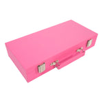 Our Mini Travel Mahjong Set is perfect for trips, journeys, or a fun game night at home! Compact and portable, it comes in a sleek vegan saffiano case with a handle for easy transport. Measuring just 12"x 5.625"x 2.25", it easily fits into your suitcase, backpack, or handbag. Despite its small size, this set includes everything you need for a great game. Inside are 4 clear acrylic trays to keep 166 premium 20mm tiles organized: 36 dots, 36 bams, 36 craks, 12 dragons, 16 winds, 16 flowers, 10 jokers, and 4 blank spares. It also includes 4 detachable acrylic pushers and stands, 3 large dice, 100 money chips, and 1 wind indicator. New to Mahjong? No worries! Clear instructions make it beginner-friendly but still fun for experts!